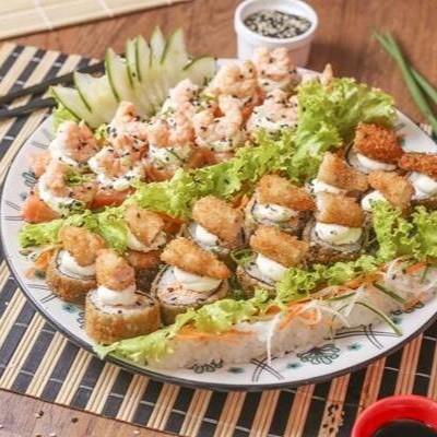 Você vai amar essa delicia com arroz, cream cheese, no sabor de camarão , envolvido com alga e empanado com farinha panko.