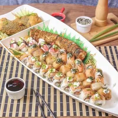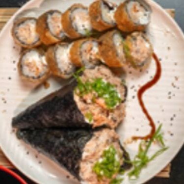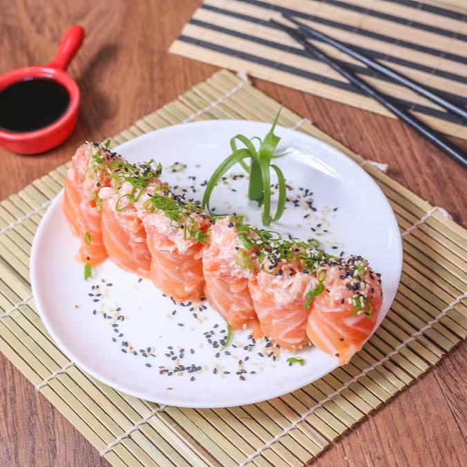 Você vai amar essa delicia com arroz, cream cheese, no sabor de pasta de salmão , envolvido com alga e empanado com farinha panko.