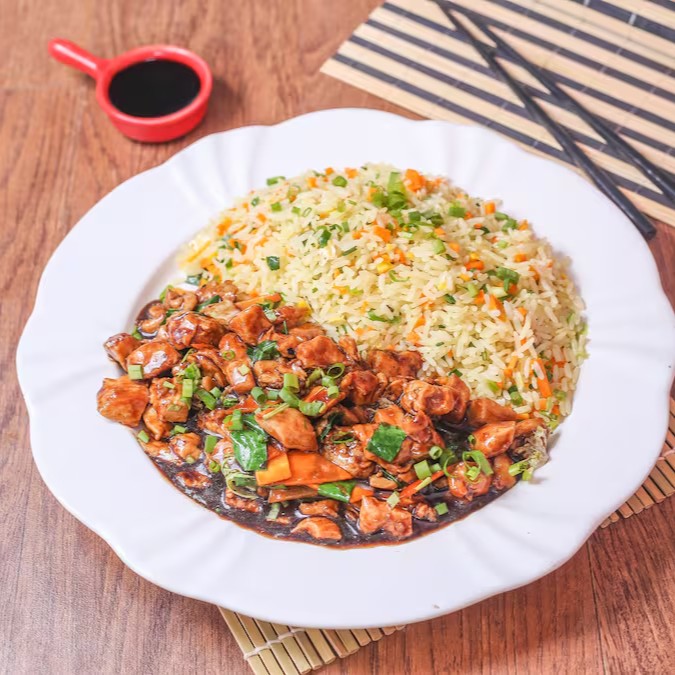 Arroz, Carne, Frango, Legumes No Molho Shoyo