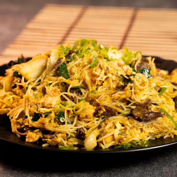 Arroz shop suey , carne, frango , legumes e molho shoyo.