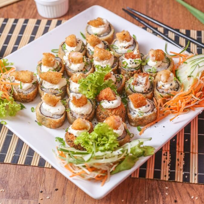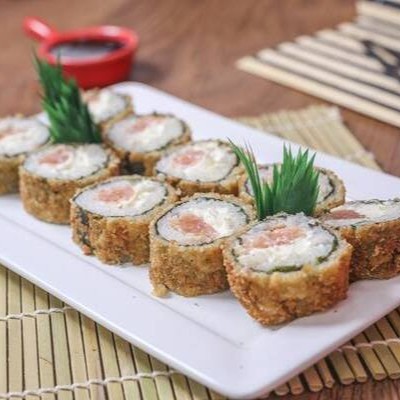 Arroz, Creanm Cheese e o sabor a sua escolha, Envolvido Com Alga E Empanado Com Farinha Panko. (Acompanha 1 Shoyu, 1 Teriyaki De 30ml E 1 Hashi)