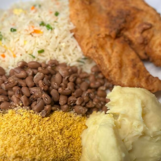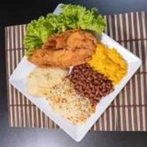 150 Gramas De File De Linguado Empanado Na Farinha Trigo. Acompanha Feijão Macassa,Arroz, Farofa E Purê .
