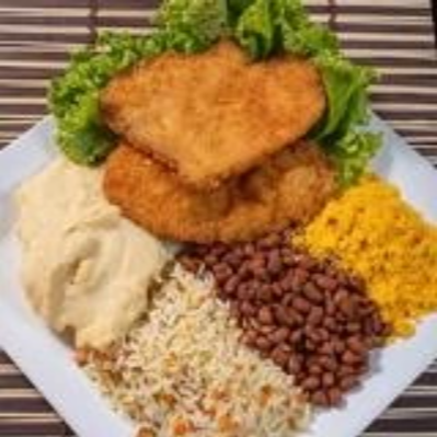 150 Gramas De File De Frango A Milanesa ( Empanado Na Farinha Panko) Acompanha Feijão Macassa , Arroz , Farofa E Purê