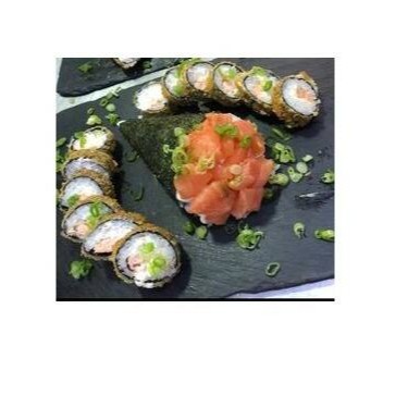 Arroz Envolvido Com Nori Recheio De Salmão ( Acompanha Shoyu,Molheira E Hashis).