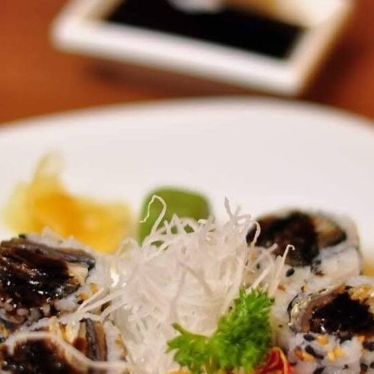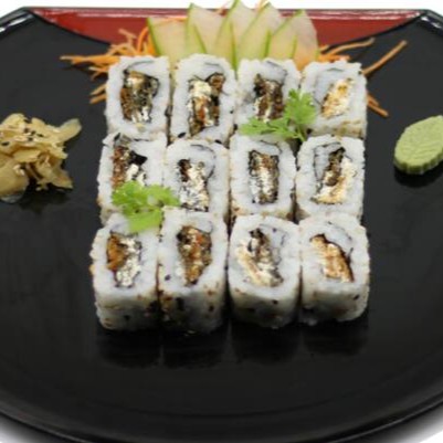 Arroz Envolvido Com Nori Recheio De Pele De Salmão Frita E Cream Cheese ( Acompanha Shoyu,Molheira E Hashis).