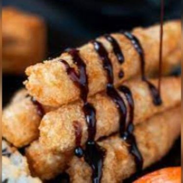 Enrolado De Arroz, Empanado E Frito Crocante, Recheado Com Kani E Cream Cheese ( Acompanha Shoyu,Molheira E Hashis)
