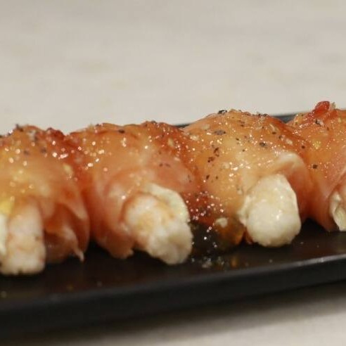 Revestido Com Uma Lamina De Salmão, Recheado Com Camarão Empanado, Cream Cheese E Cebolinho. (Acompanha Shoyu, Molheira E Hashi). (Sem arroz)