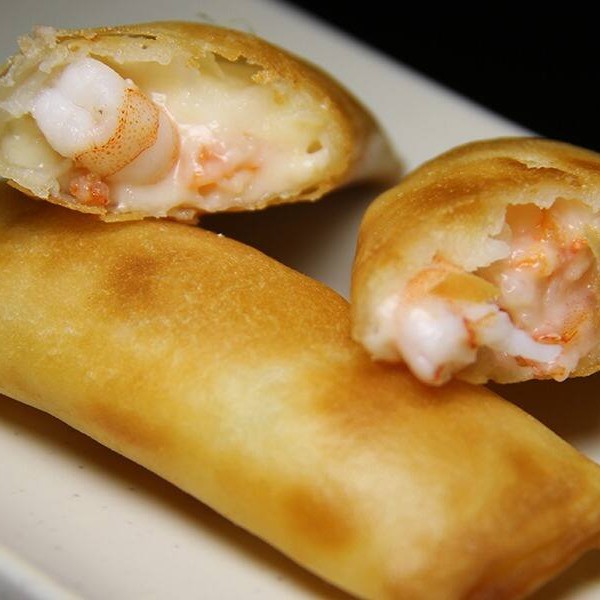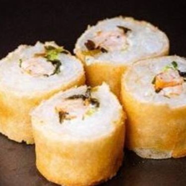 Enrolado De Arroz, Empanado E Frito Crocante, Recheado Com Camarão crocante E Cream Cheese ( Acompanha Shoyu,Molheira E Hashis)