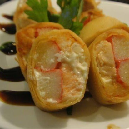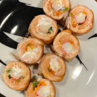 Enrolado, Massa De Harumaki, Empanado E Frito Crocante, Recheado Com Salmão, Kani E Cream Cheese. (Sem Arroz) ( Acompanha Shoyu,Molheira E Hashis)