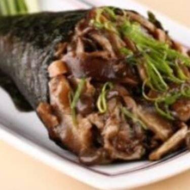 Arroz Envolvido Com Nori, Recheio De Cebola Fatiada Fininha Empanada E Frita Com Cream Cheese ( Acompanha Shoyu,Molheira E Hashis)