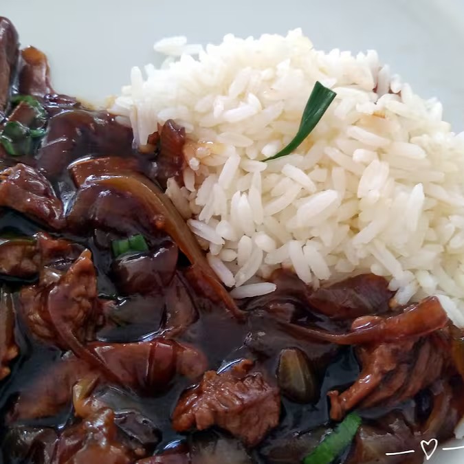 Isca de carne bovina temperadas e fritas, finalizadas com molho especial acompanha arroz branco e batata palha. ( os acompanhamentos não se trocam )