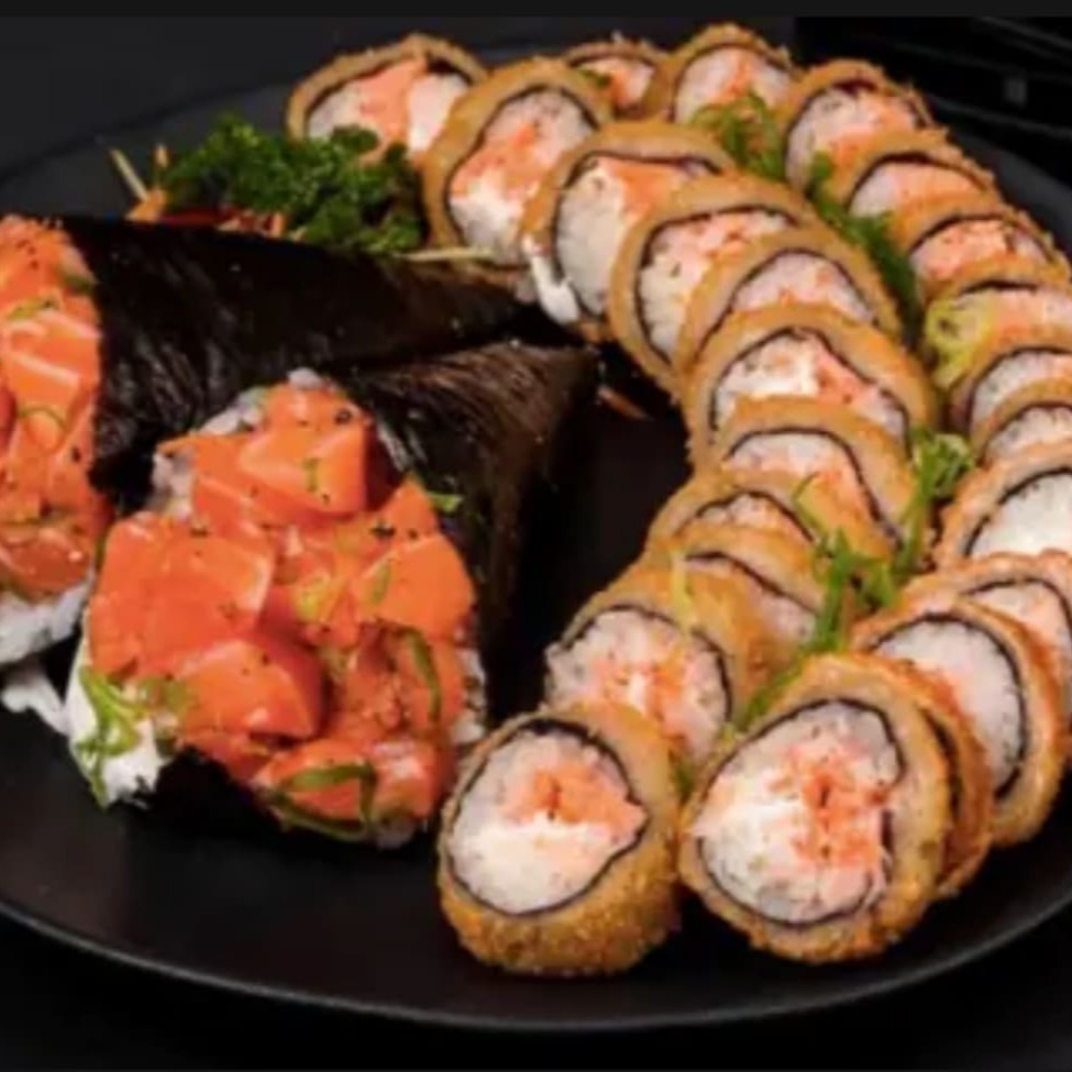 Combo Sushi Temaki Salmão Empanado Mas Carioca