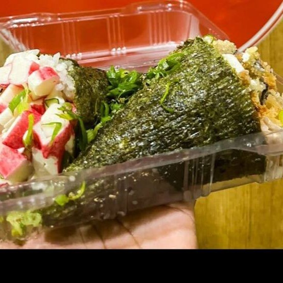 1 temaki de kani, 1 temaki de skin - natural. Acompanha molhos