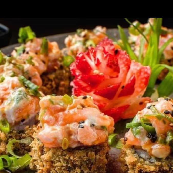 O Melhor Da Culinária Japonesa Na Sua Casa, Aproveite! Acompanha Arroz, cream cheese e skin de salmão empanados na farinha panko e fritos (20 peças).
