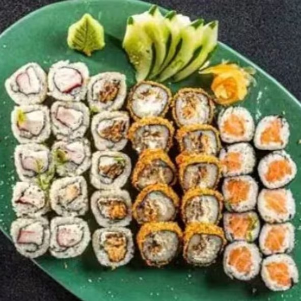 30 peças (10 cariocas skin, 10 cariocas kani, 10 uramakis camarão empanado)+ dupla de temaki (1 de kani e 1 de camarão empanado)