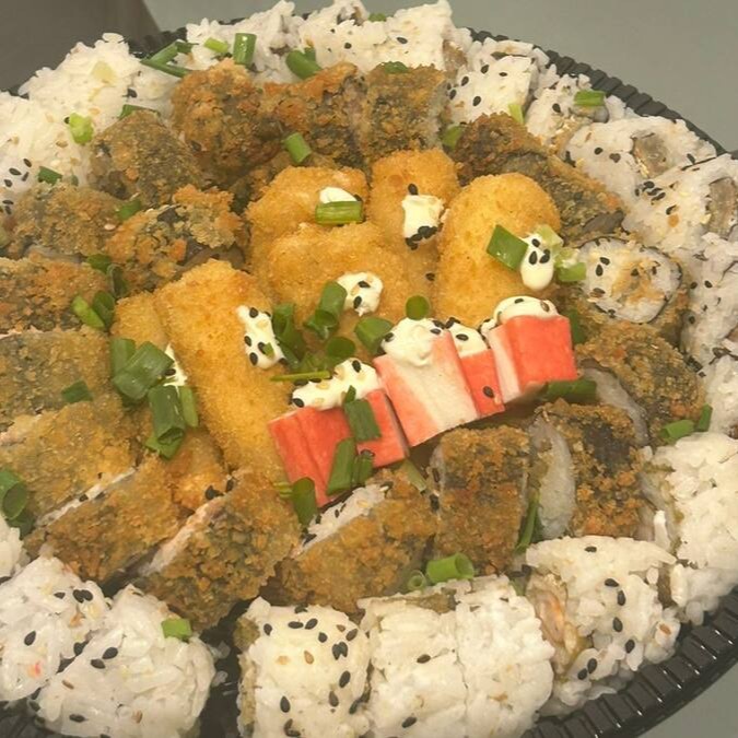 30 peças (10 cariocas skin, 10 cariocas kani, 10 uramakis camarão empanado)+ dupla de temaki (kani e skin)