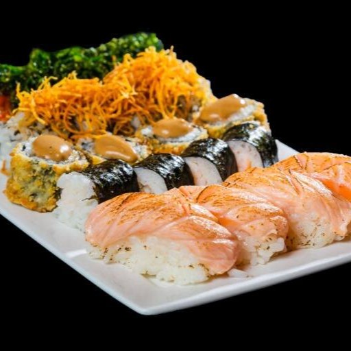 10 cariocas salmão10 uramakis misto (kani, camarão empanado)4 niguiri salmão4 joys especiais