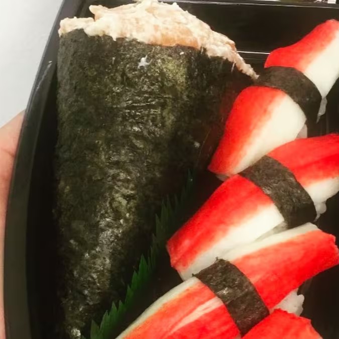 3 niguiri kani, 3 niguiri skin, 1 temaki misto. Acompanha molhos, gergilim e cebolinho.