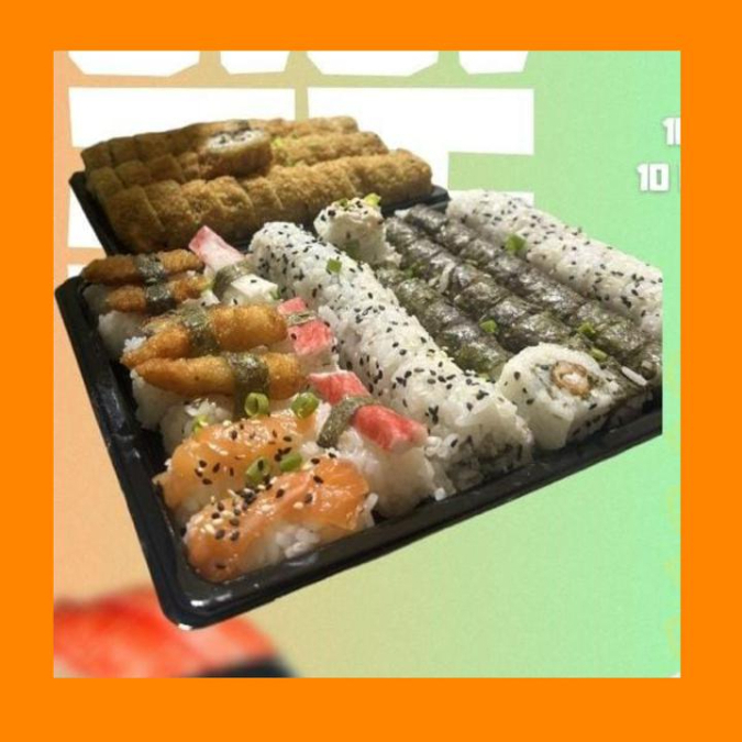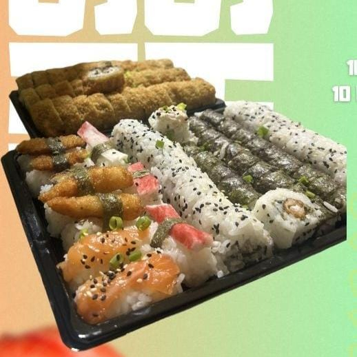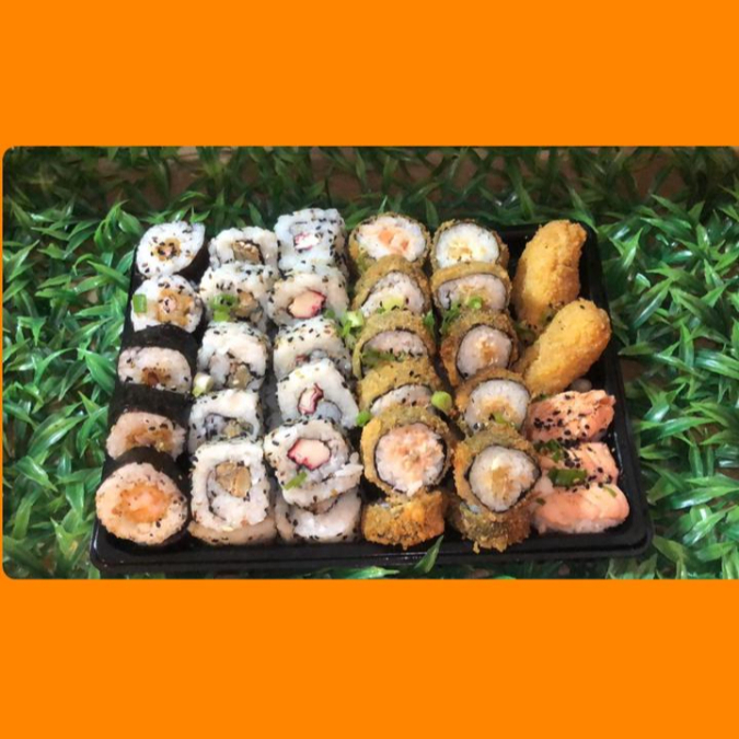 10 Cariocas De Salmão, 10 Cariocas De Skin, 10 Hossamaki De Camarão, 10 Uramaki De Skin E 10 Uramaki De Kani, 3 Niguiri E 2 Camarões empanados com cream sheese.