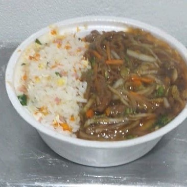 Risoto ,carne desfiada com cebola ao molho shoyu
