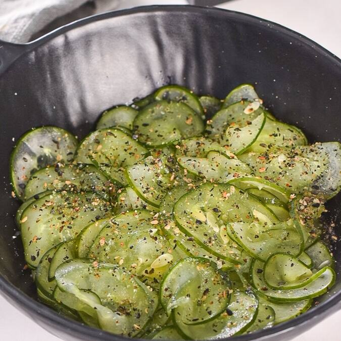 Salada de pepino japonês levemente adocicado