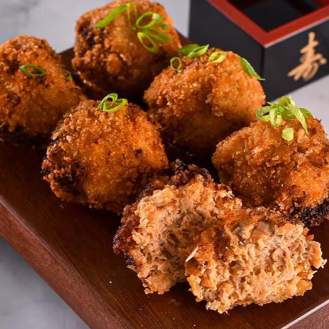 Bolinha de salmão frita.
