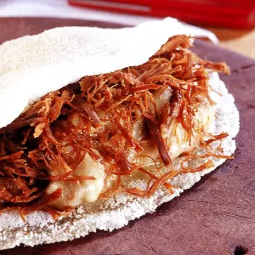 Tapioca De Costela Bovina Com Queijo Coalho E Cheddar.