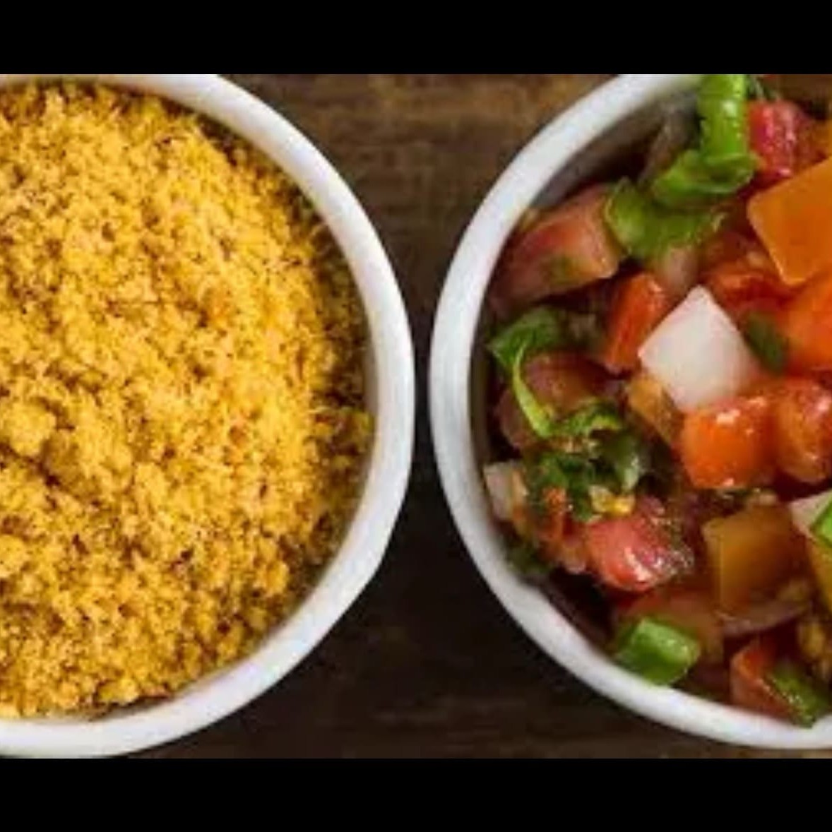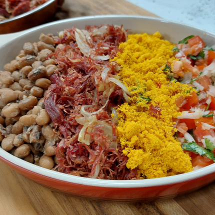 Delicioso arrumadinho de charque, acompanha arroz branco, farofa e vinagrete