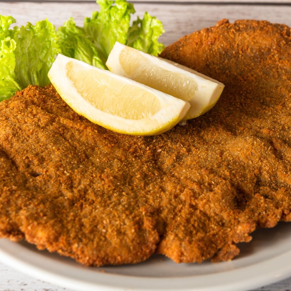 Delicioso bife de carne a milanesa para 02 pessoas onde você pode escolher até 02 acompanhamentos. (Todos os itens vão em marmitas separadas)