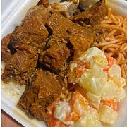 Marmita (H2)Acompanha Arroz, Macarrão, Salada e farofa. O feijão de sua escolha (preto, mulato e macassar) Aproximadamente 850g