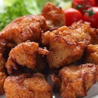 Cubos de peito de frango levemente empanado