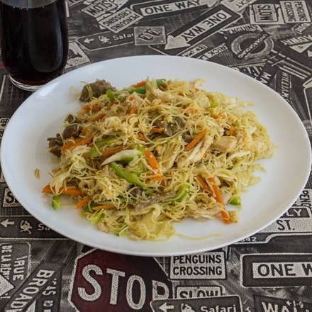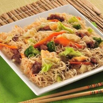 Macarrão de arroz, ovo, carne e frango, pimentão, cenoura e repolho em tiras. Atenção: Na Escolha Do Para 2p, É 1p Pra Duas Pessoas.