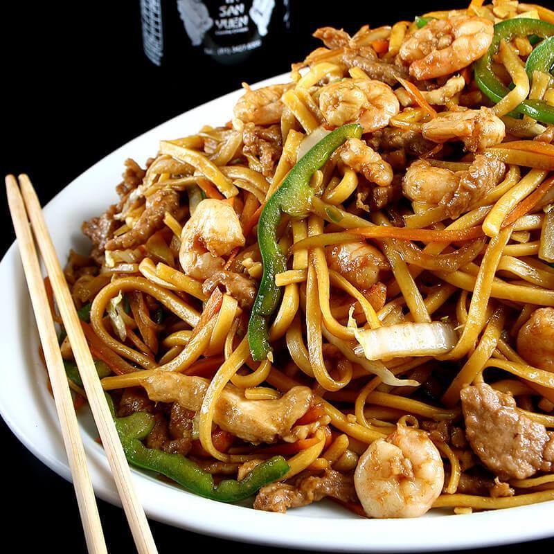 Macarrão, carne, frango e camarão ao molho de shoyu. Atenção: Na Escolha Do Para 2p, É 1p Pra Duas Pessoas.