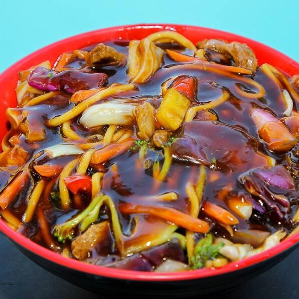 Macarrão, carne e frango com bastante molho shoyu (sem legumes). Atenção: Na Escolha Do Para 2p, É 1p Pra Duas Pessoas.