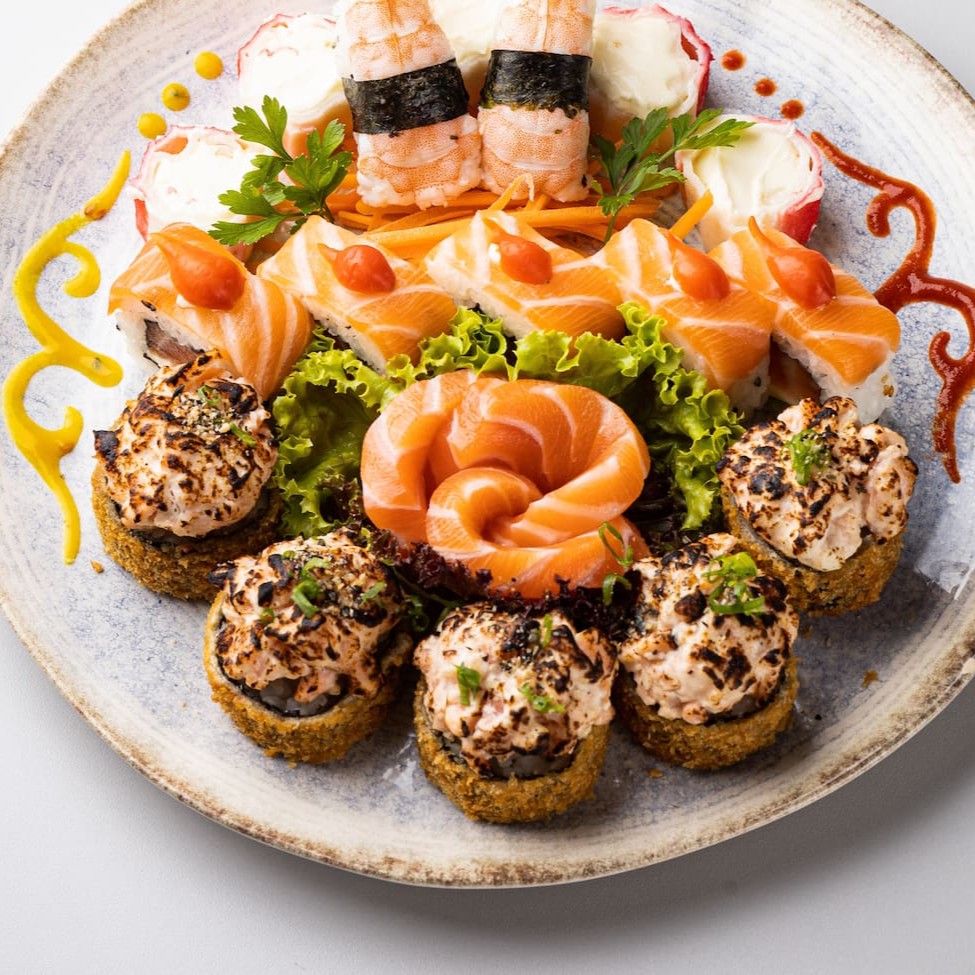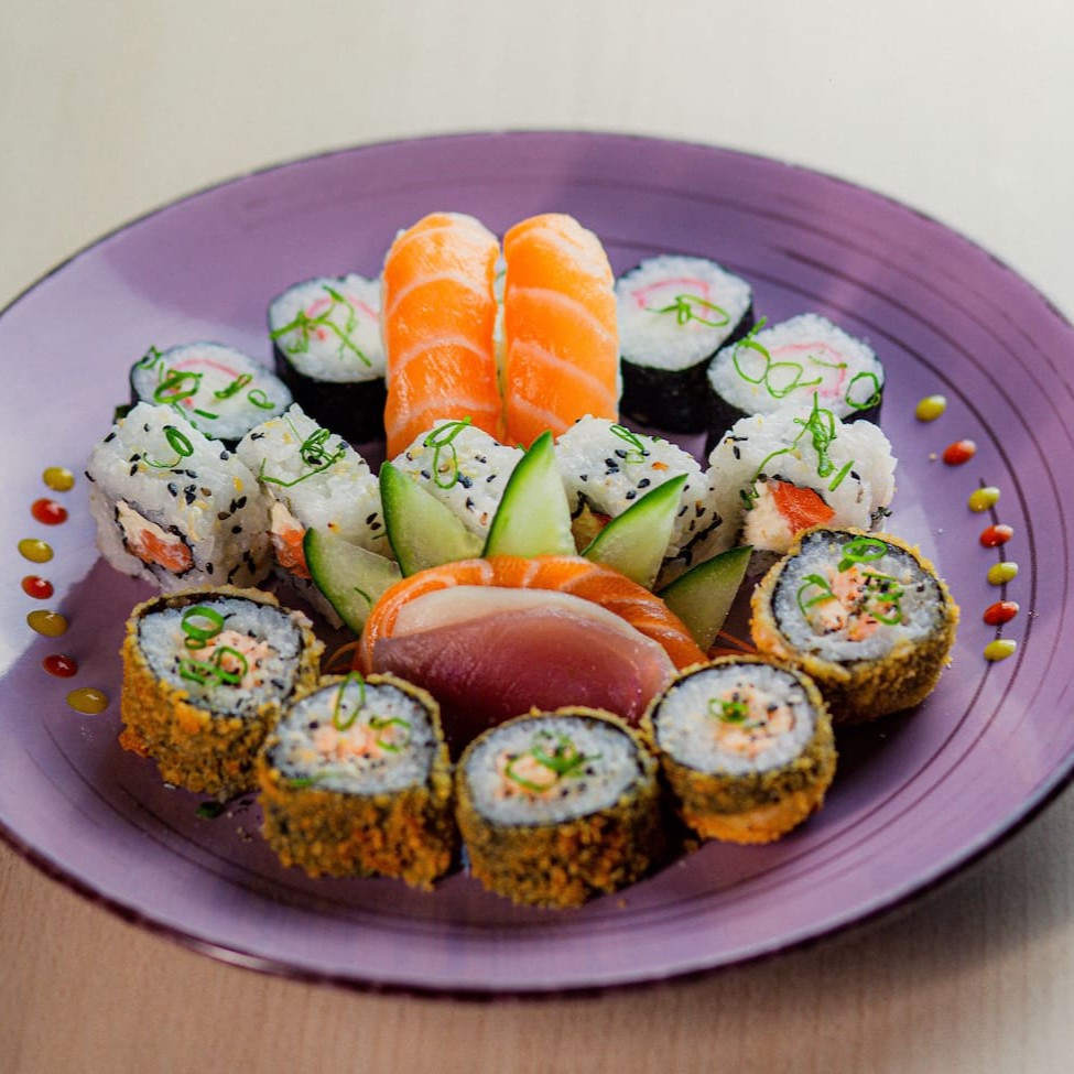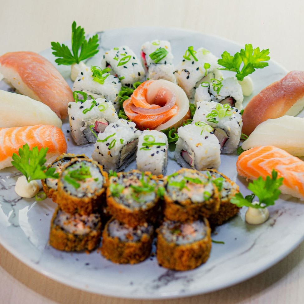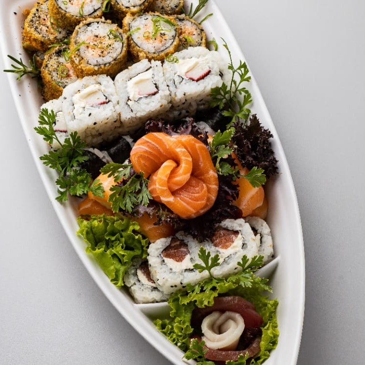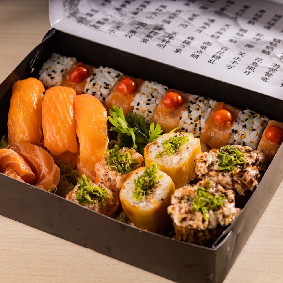 5 carioca especial, 5 kani e queijo, 5 uramaki Philadelphia especial, 3 sashimi salmão, 2 niguiri camarão.
