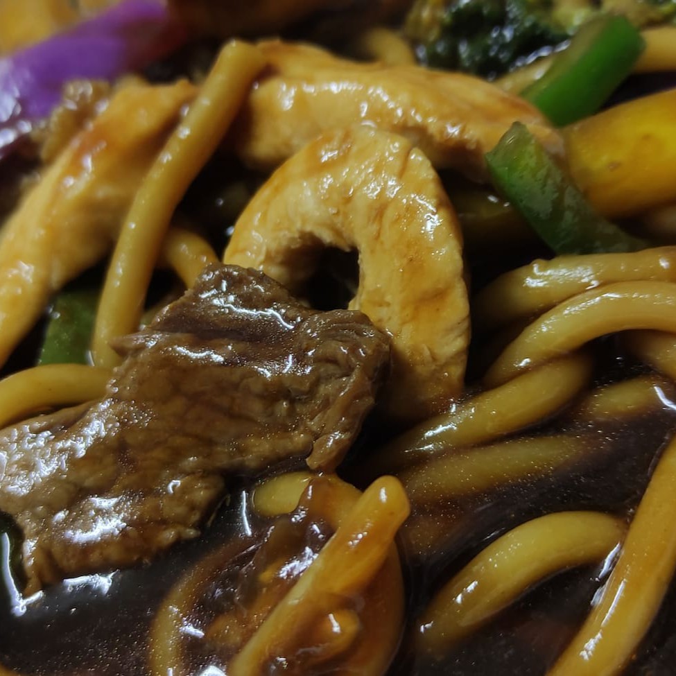 Massa, (carne, frango e camarão) legumes (acelga, cenoura e pimentão)