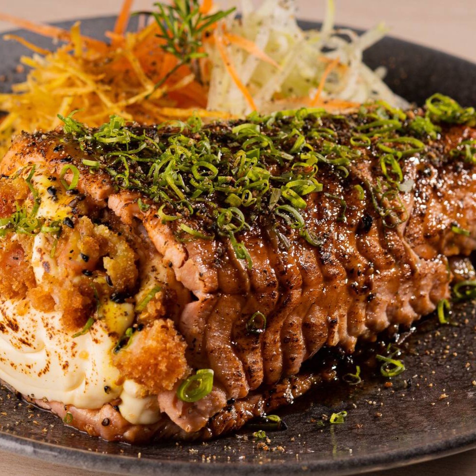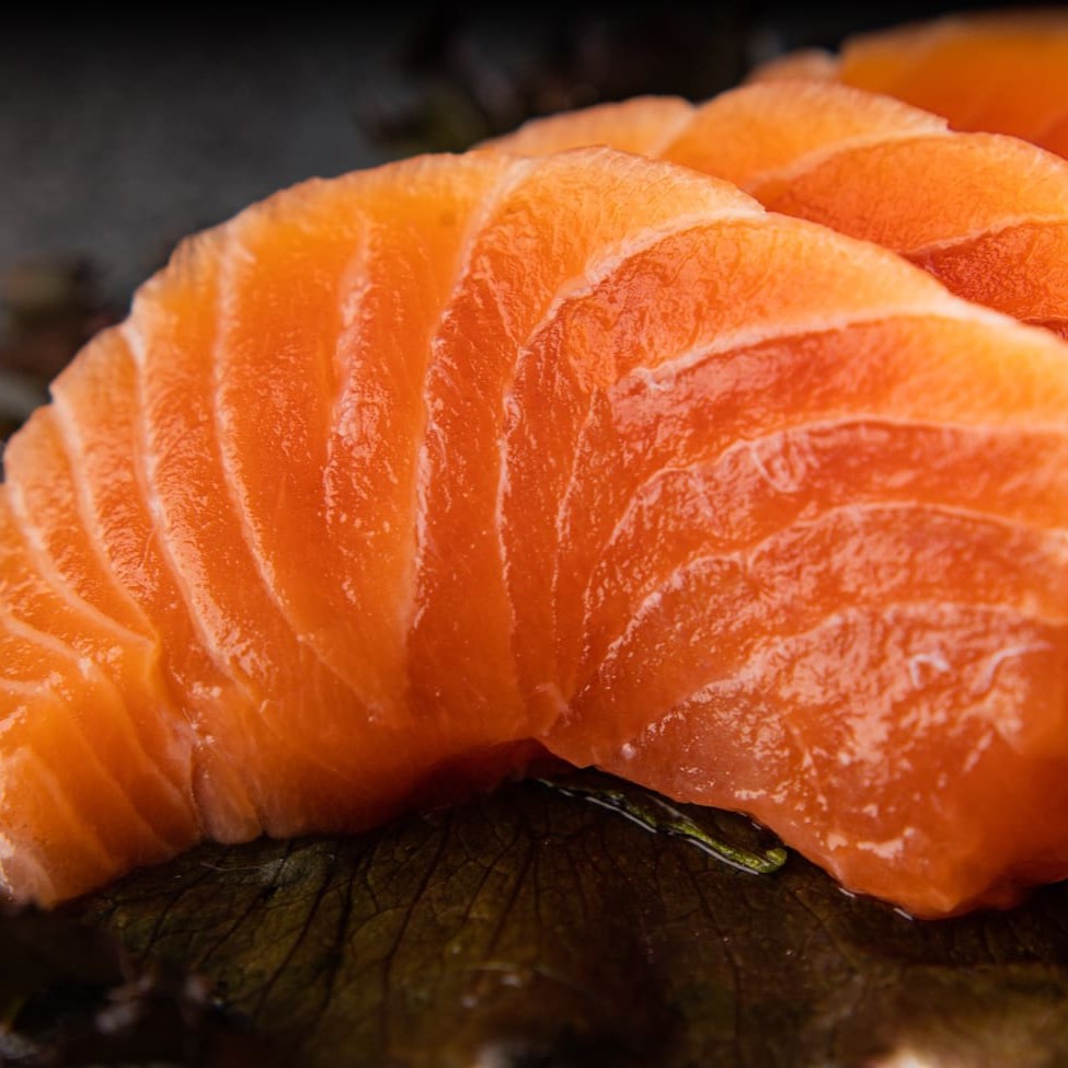 Lâmina de salmão maçaricado, molho da casa, camarão, cream chesse