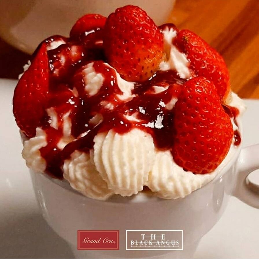 Suspiros e calda de morango.