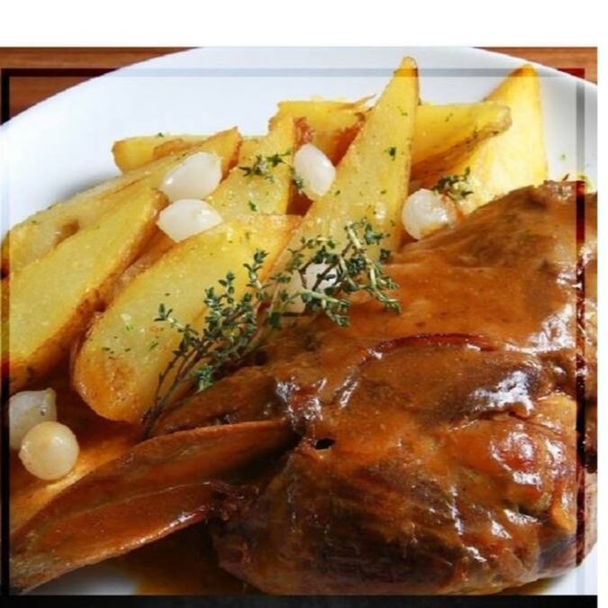 Ao molho demi-glace, batata rustica e arroz maluco.