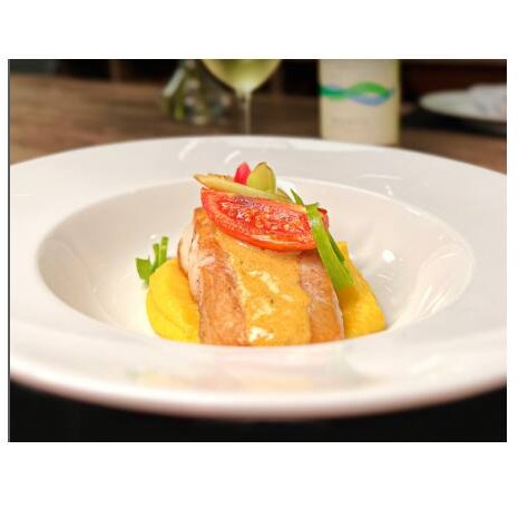 Creme de mandioquinha, molho de ervas e chardonnay.