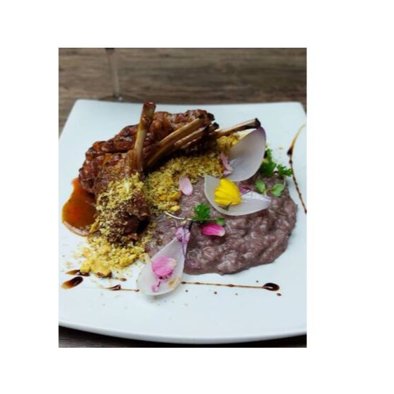 Com risoto de vinho tinto.