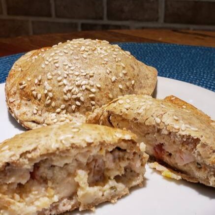Pastel de forno com massa integral e recheio de peito de peru, ricota e tomate seco.