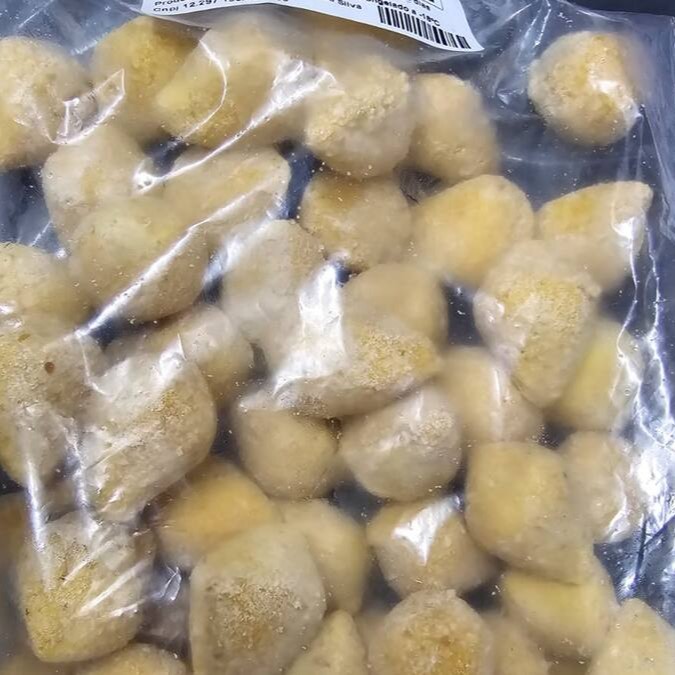 Saco contendo 50 minicoxinhas congeladas de frango Para Fritar Em Casa. Ótima opção fritar na hora em alguma ocasião. Supercrocante e recheada. Vale a pena provar! Sugerimos fritar em óleo por aproximadamente 2 minutos numa temperatura de 180º (o tempo pode variar de acordo com o seu fogão)