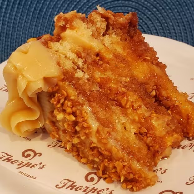 Delicioso brownie de chocolate coberto com um fantástico brigadeiro Thorpe's e farofa crocante (amendoim com leite em pó)