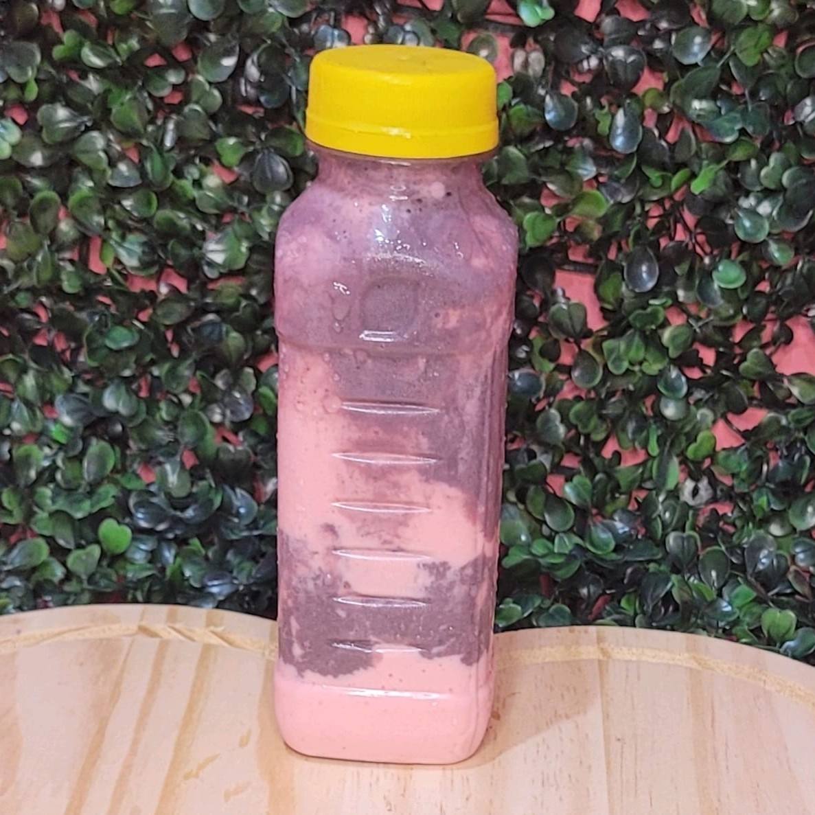 300ml de açaí cremoso batido na garrafa, finalizado com irresistível creme de morango 🍓💜