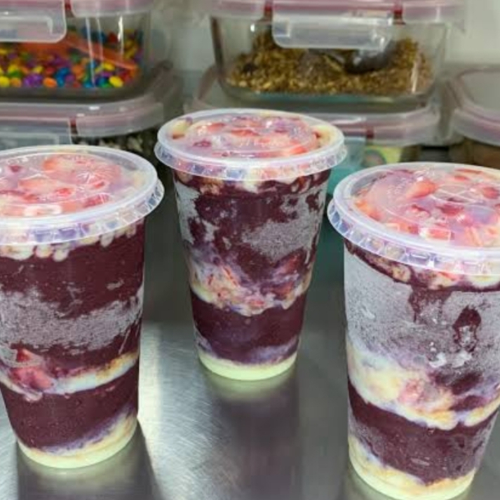 3 copos de açaí 300ml. Açaí tropical com leite em pó e leite condensado.