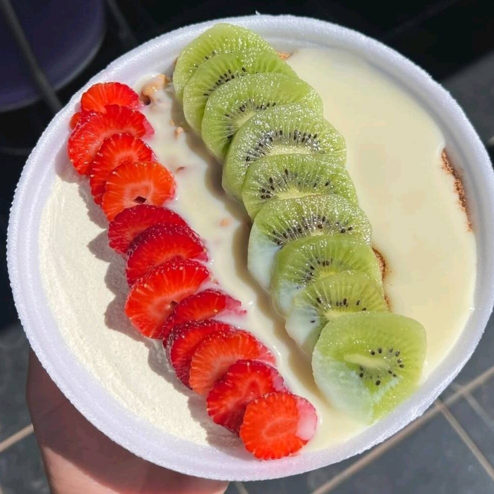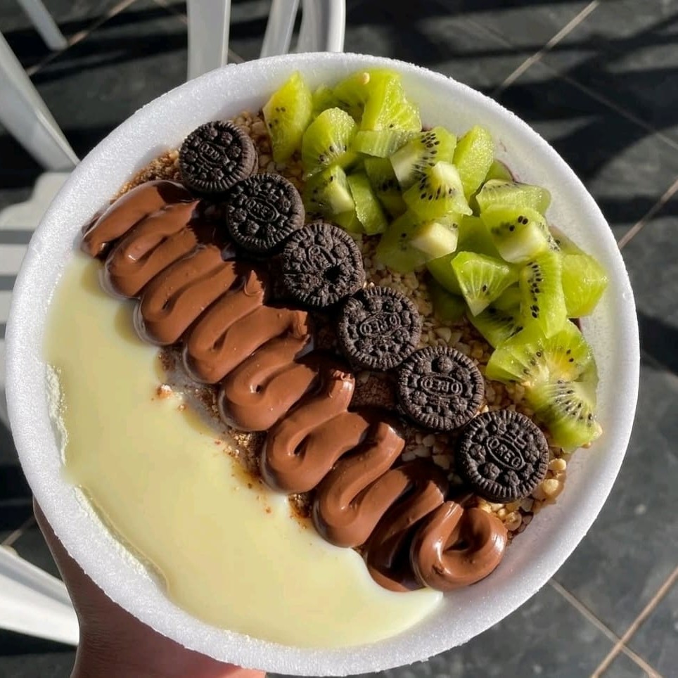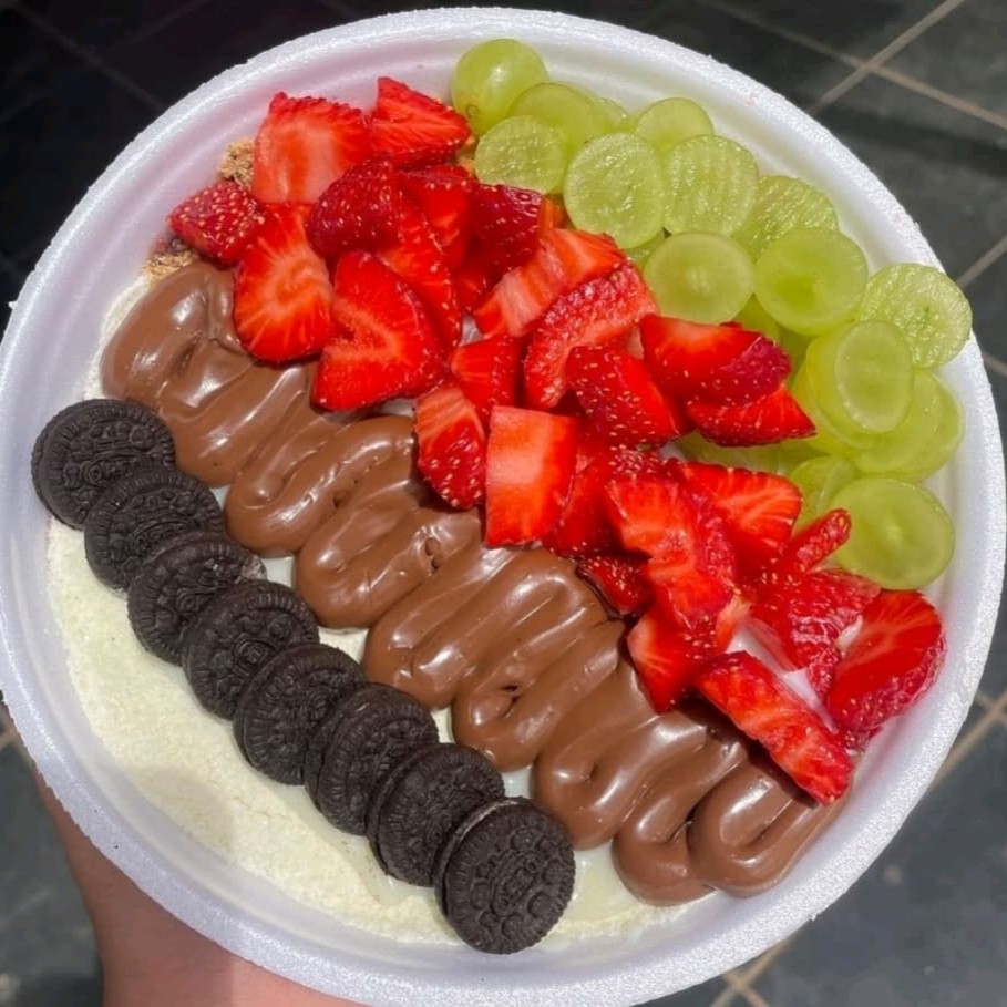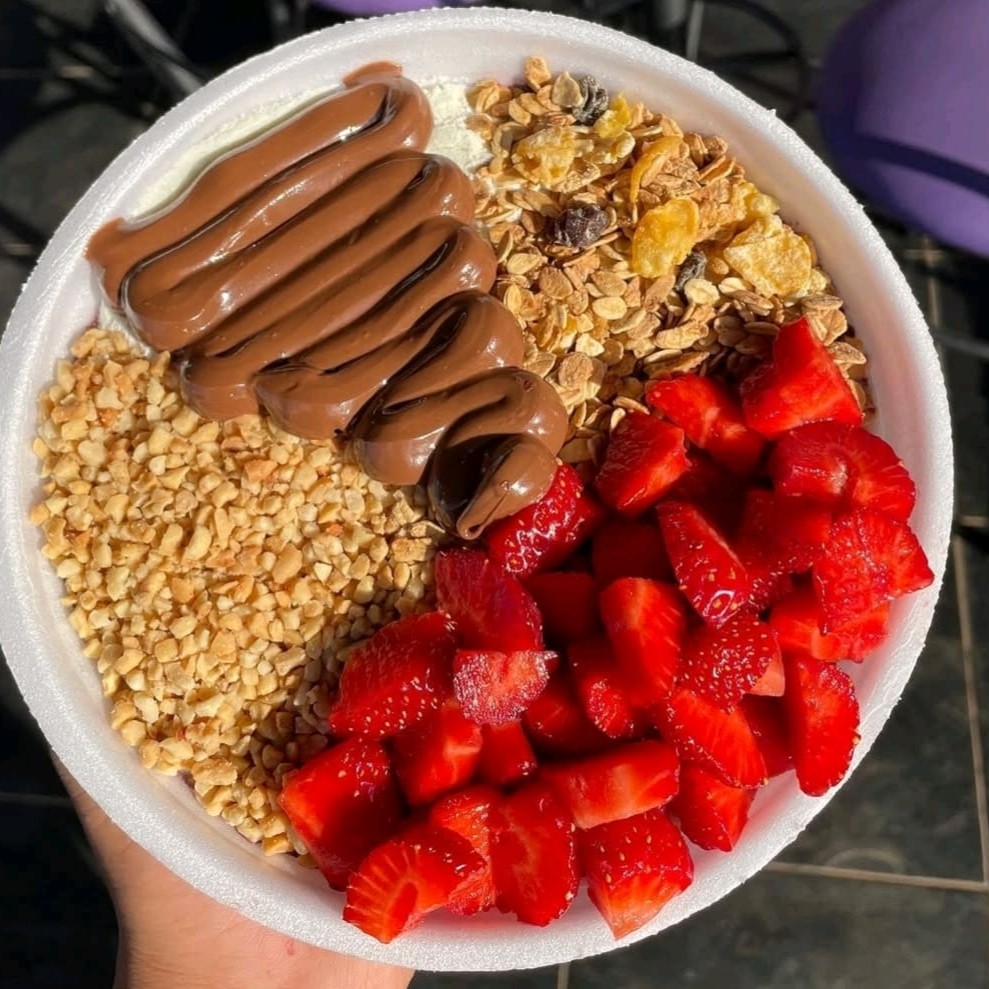 Aprox. 700 ml Gelado no ponto certo, com frutas frescas e acompanhamentos a sua escolha. Aproveite para experimentar o adicional de creme trufado de chocolate.