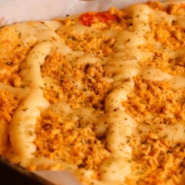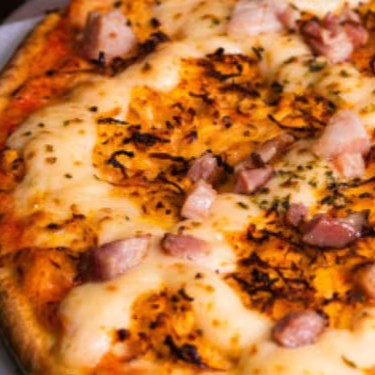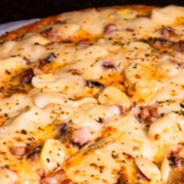 Molho De Tomate, Mussarela, Frango, Cheddar, Bacon, Azeitona E Orégano.