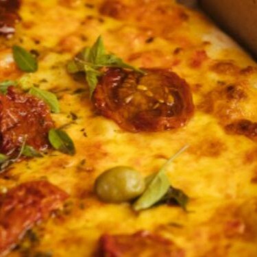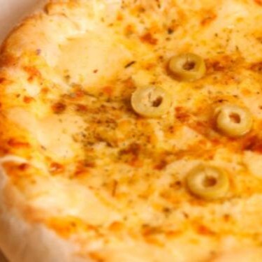 Pizza media de 4 Queijos - Molho De Tomate, Mussarela, Orégano, Azeitona, Provolone, Catupiry E Parmesão