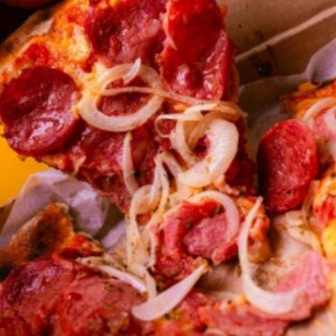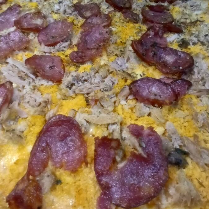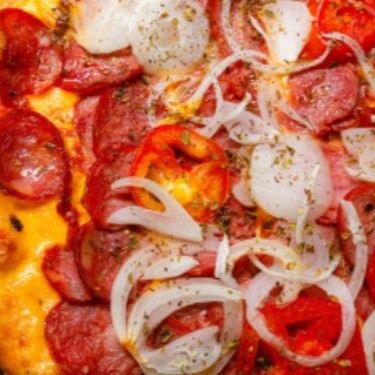 Pizza media de Calabresa -Molho De Tomate, Mussarela, Orégano, Azeitona, Calabresa E Cebola